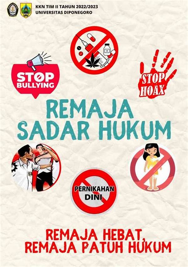 Melibatkan remaja dalam pembuatan kebijakan atau event terkait hukum juga bisa menjadi pendekatan yang menarik. Ini bukan hanya memberikan dampak langsung dalam meningkatkan kesadaran hukum di kalangan remaja, melainkan juga berpotensi membangun generasi muda yang lebih berintegritas. Penggunaan media sosial sebagai alat promosi dan informasi juga bisa dilibatkan dalam langkah ini, mengingat remaja sangat akrab dengan platform tersebut.